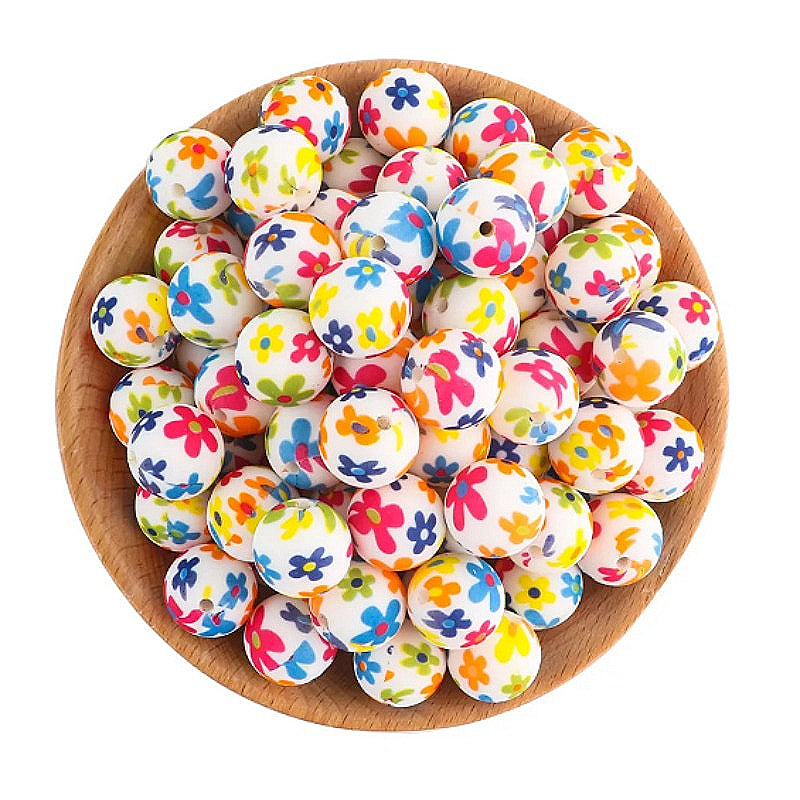 Wholesale 50pcs 15mm Water Transfer Sakura Pattern Silicone Beads