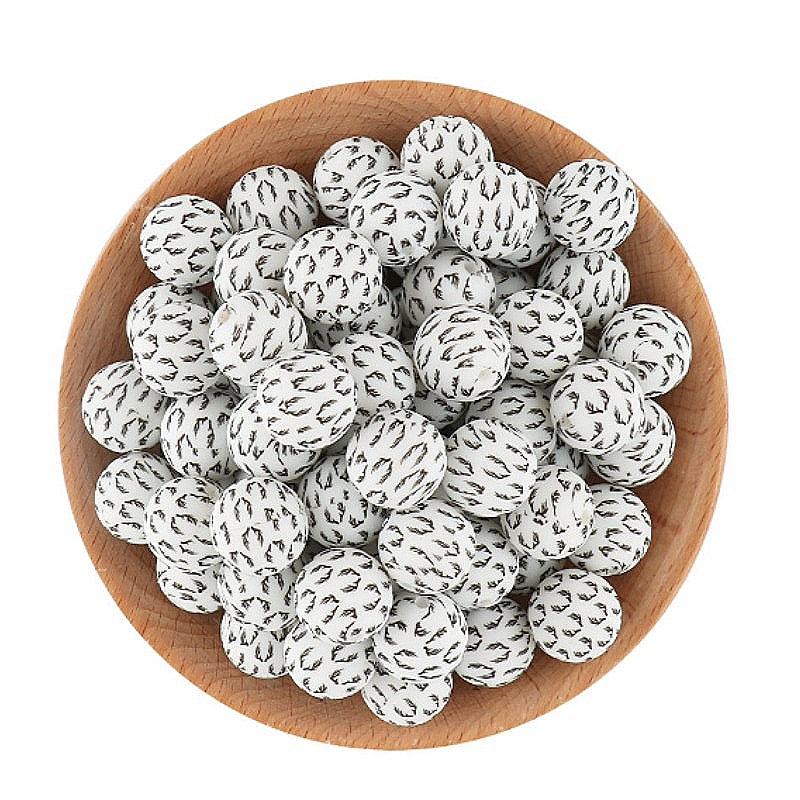 Wholesale 50pcs 15mm Water Transfer White Antler Pattern Silicone Beads