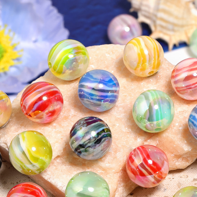 Wholesale 50pcs Imitation Marble Rock Layer Round Beads, Dual Color Striped Acrylic DIY Beads