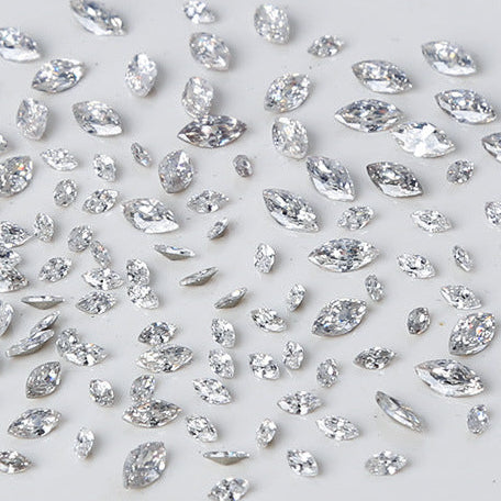 - About 50 pointed horse-eye zircon diamonds (ND-596 white medium)