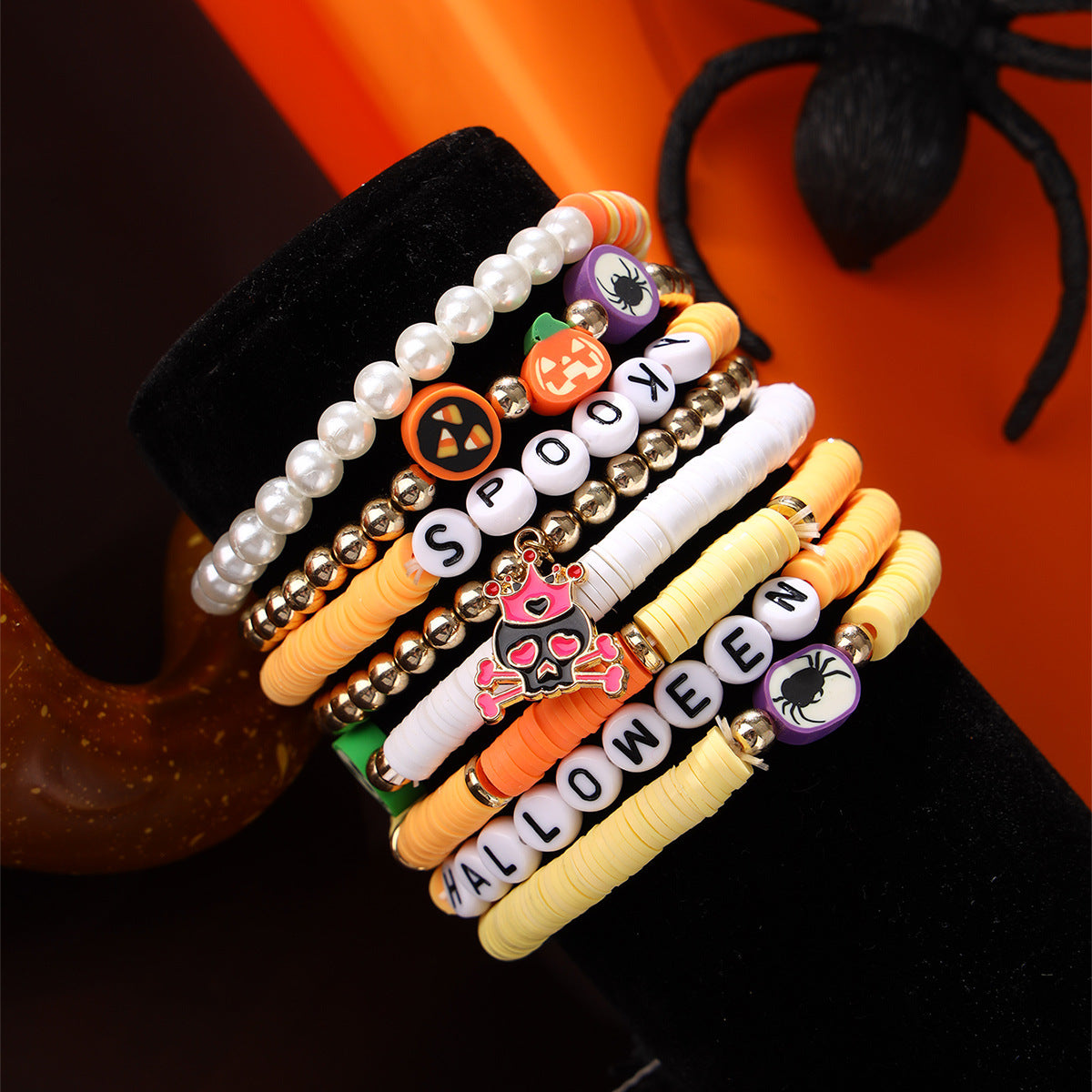 Wholesale 50PCS New Halloween Set Polymer Clay Beaded Bracelet