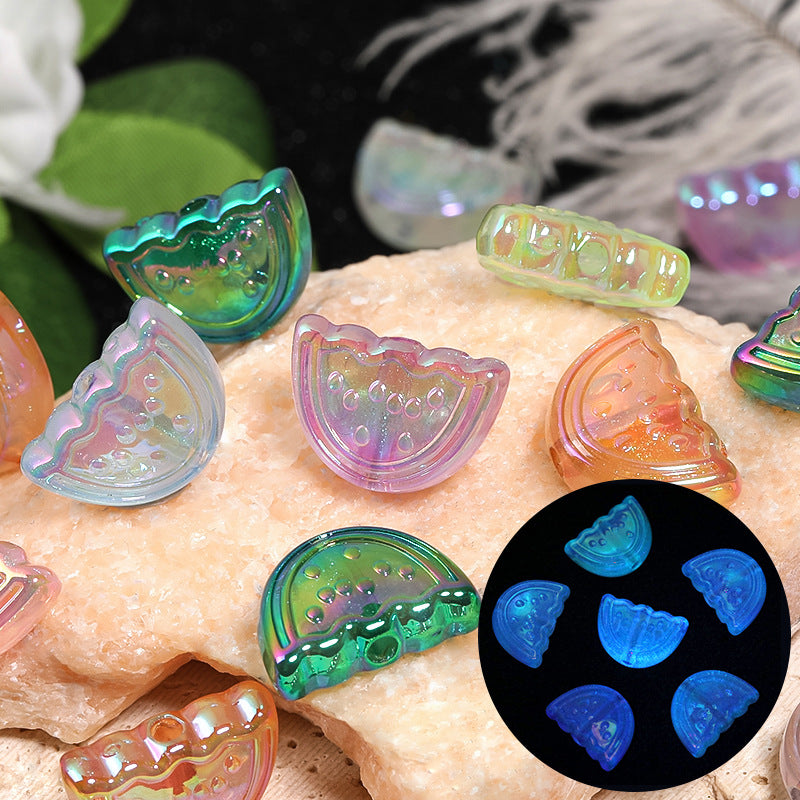Wholesale 50pcs Night Light Acrylic Watermelon Transparent Color Fine Glitter Fruit Children DIY Beads