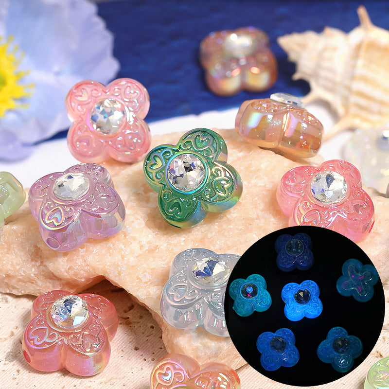 Wholesale 50pcs Nightlight Sparkling Love Clover with Diamonds Acrylic DIY Beads