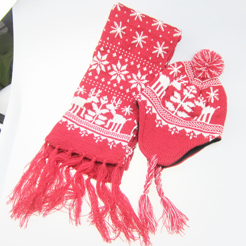 Wholesale Christmas Snowflake Elk Wool Scarf Hat Set of Two