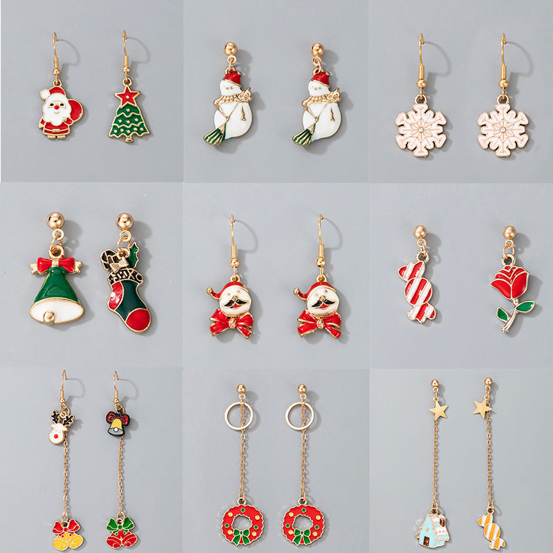 Wholesale Christmas Snowman Elk Candy Santa Claus Alloy Earrings