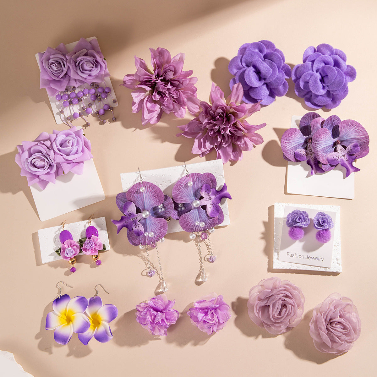 Wholesale 10PCS/Pack purple oval turquoise earrings rose flower earrings earrings women