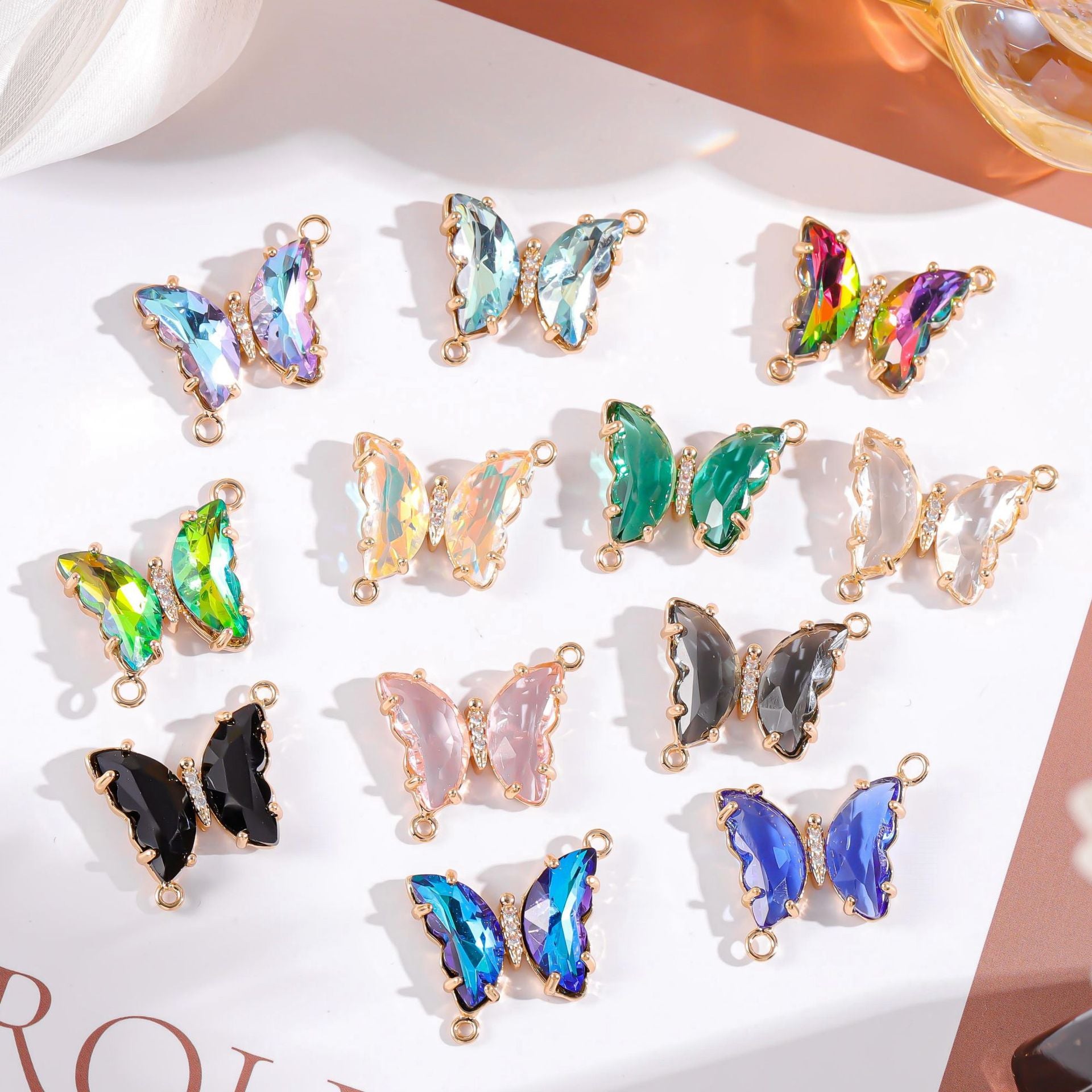 Wholesale Crystal Butterfly Alloy Beads Straight Hole Beads DIY Accessories