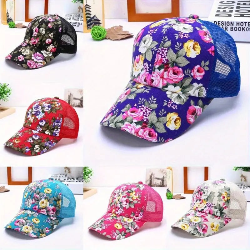 Wholesale Floral Cross Ponytail Polyester Baseball Cap