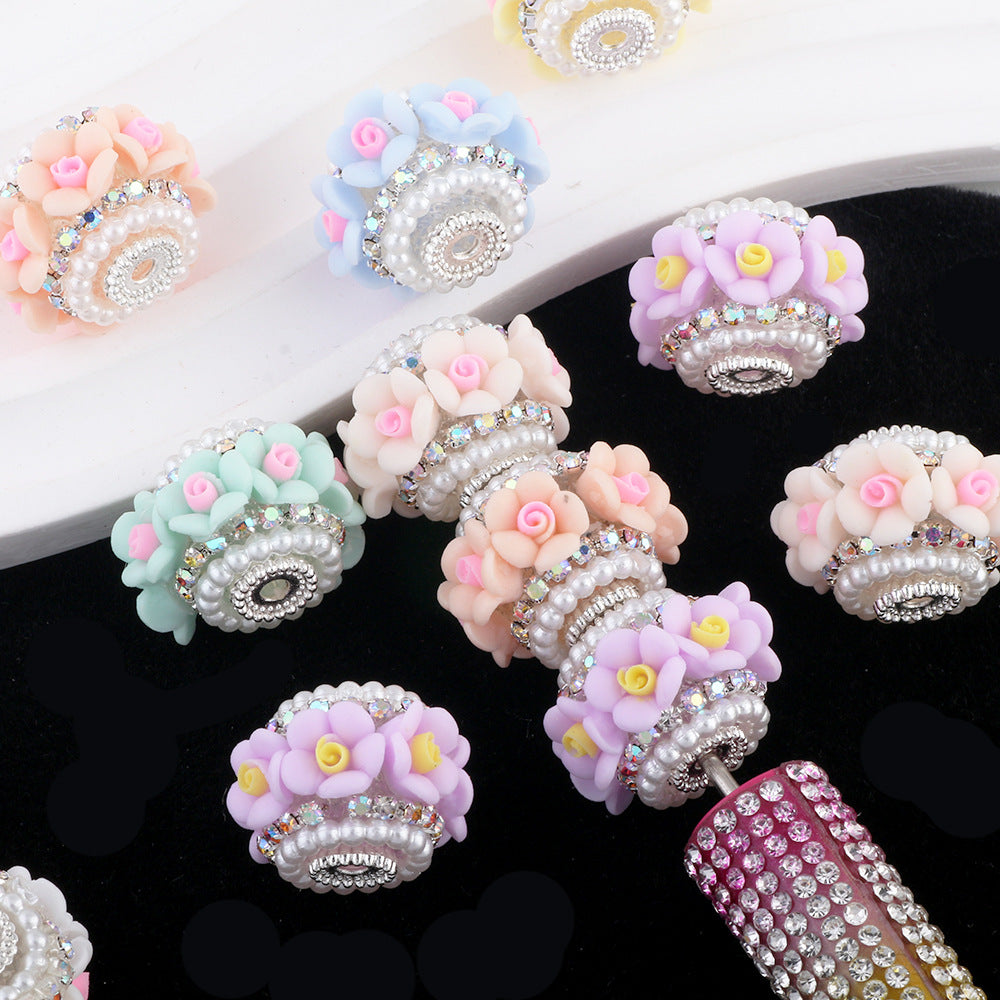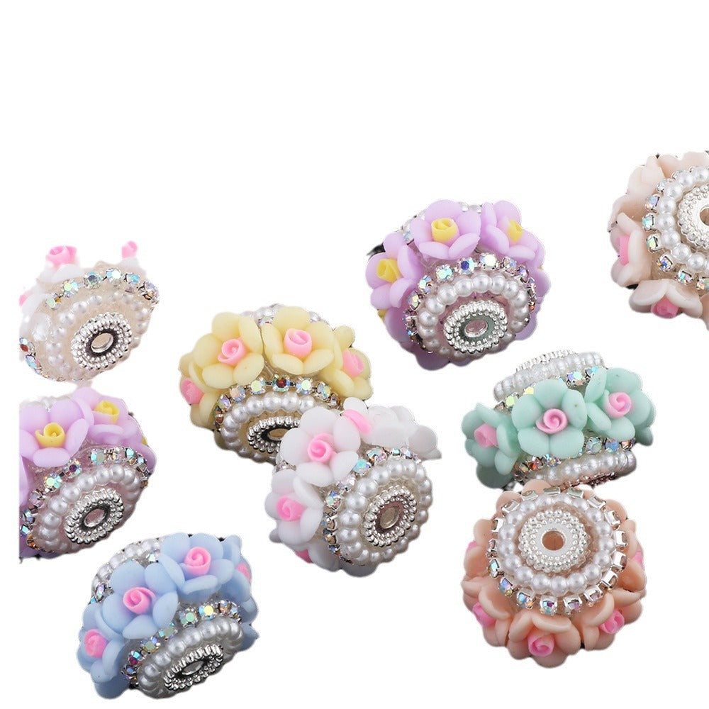 Wholesale 10pcs Flower Round Barrel Drill Balls Straight Hole Beads
