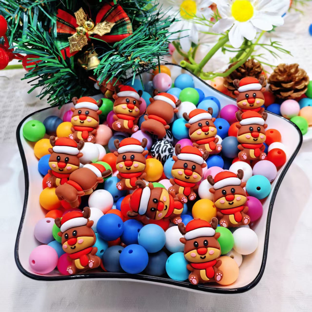 Wholesale 10pcs/pack 2D Christmas Cartoon Focus Beads DIY Silicone Beads$5.30 Free Shipping