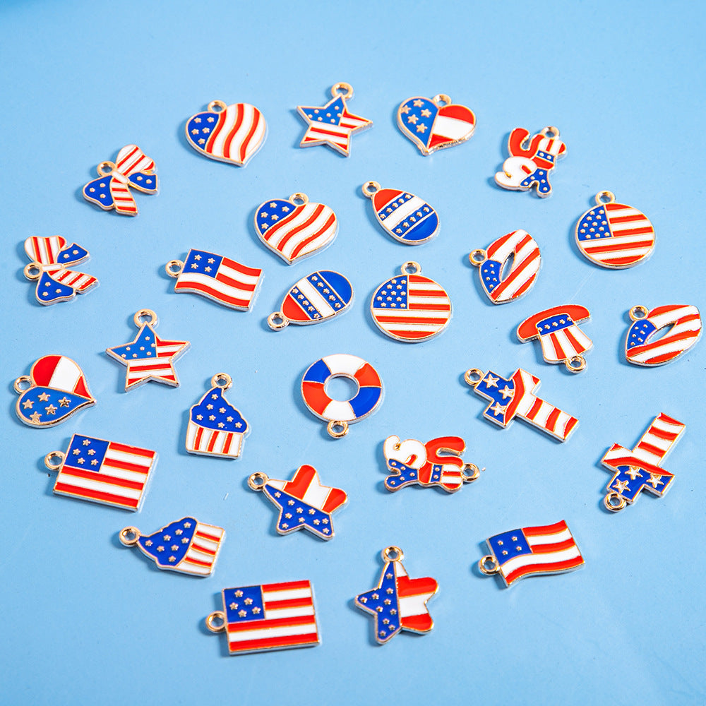 Wholesale 10pcs/pack American Independence Day flag diy alloy dripping oil accessories pendant