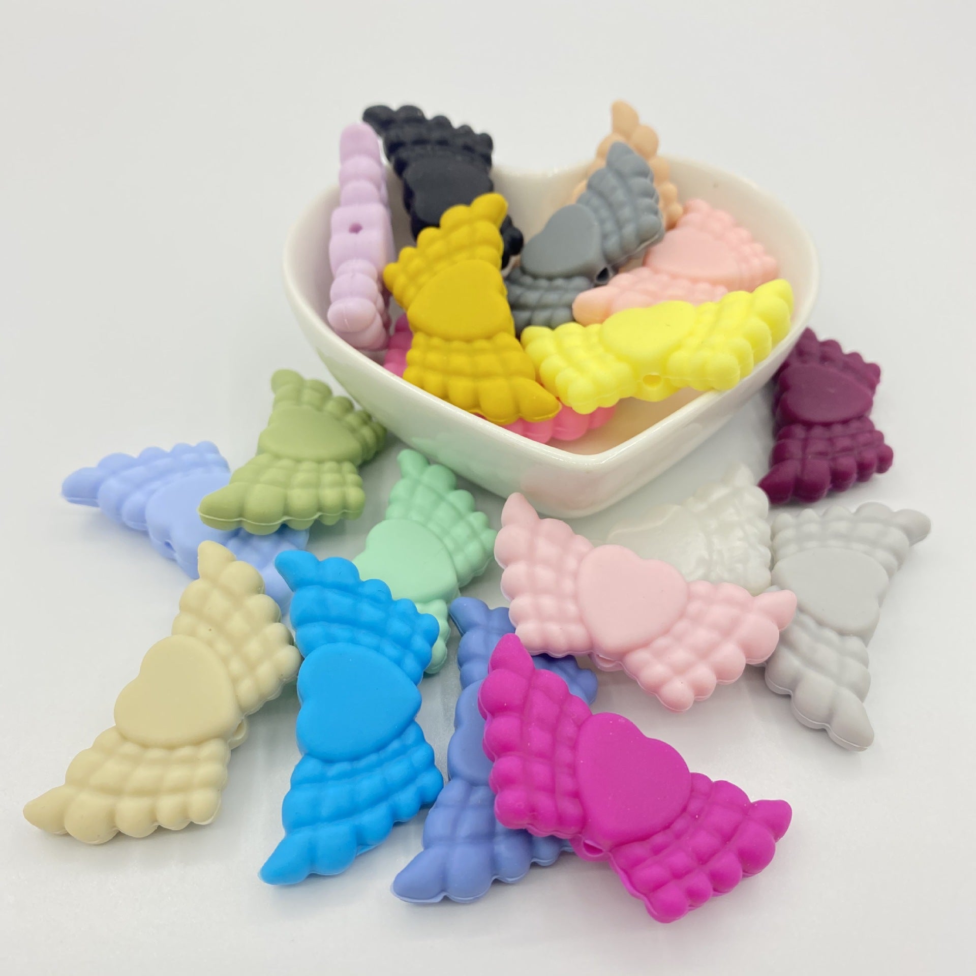 Wholesale 38*19*7.5MM Angel Feather Wings Focal beads Silicone 10pcs