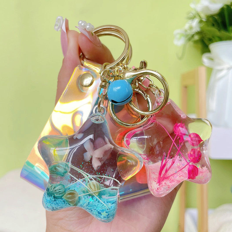 Wholesale Acrylic Into The Oil Dry Flower Five-pointed Star Quicksand Creative Key Chain
