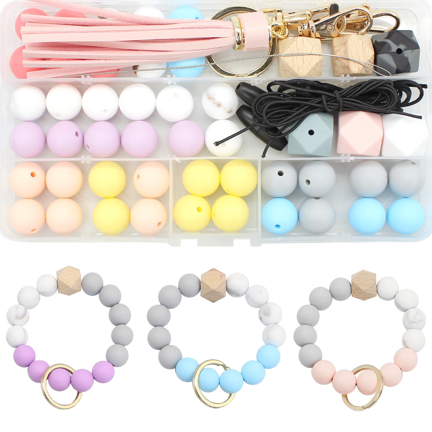Wholesale DIY Silicone Beads Wrist Keychain 15 Grids