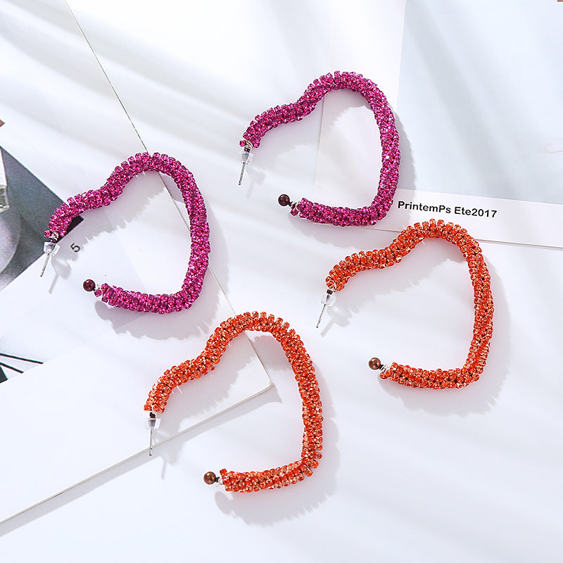 Wholesale Fashion Open Heart Shaped Earrings with Diamonds