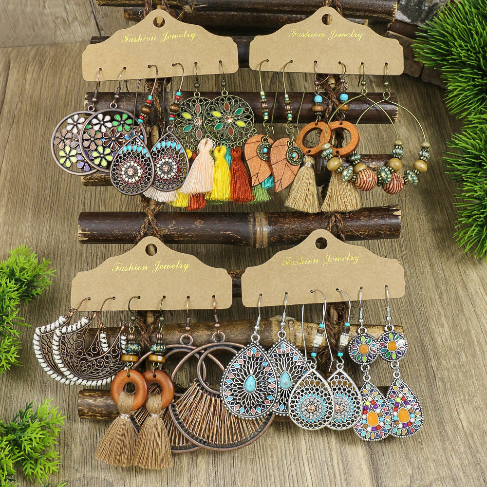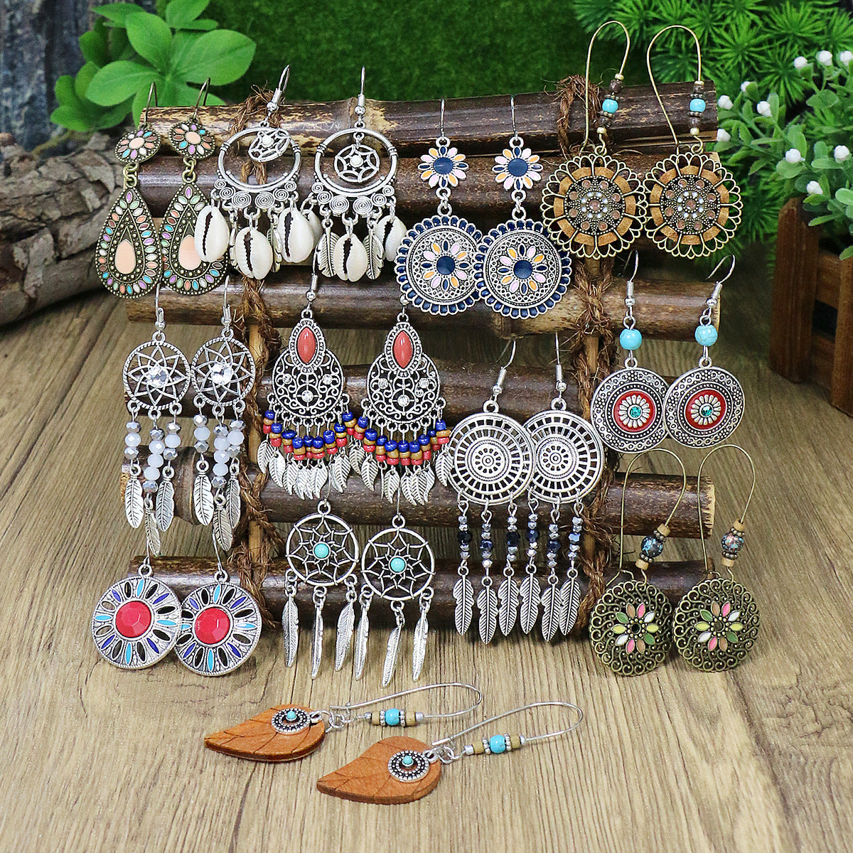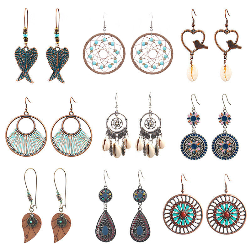 Wholesale Bohemian Fashion Teardrop Shape Vintage Long Earrings