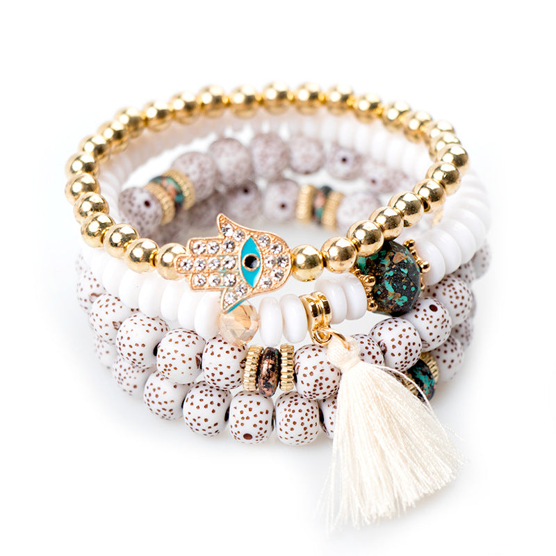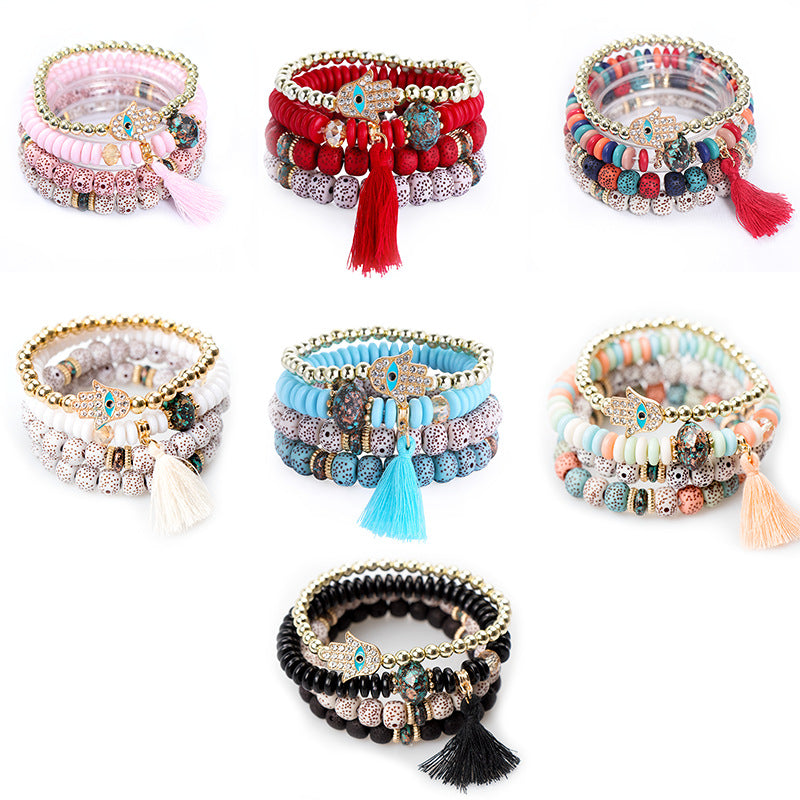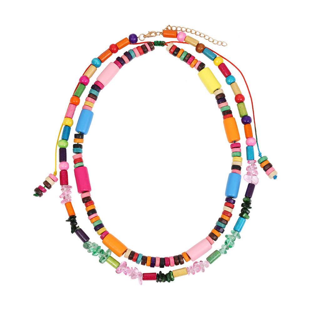 Wholesale Bohemian Double-layer Colored Pearl Flower Necklace