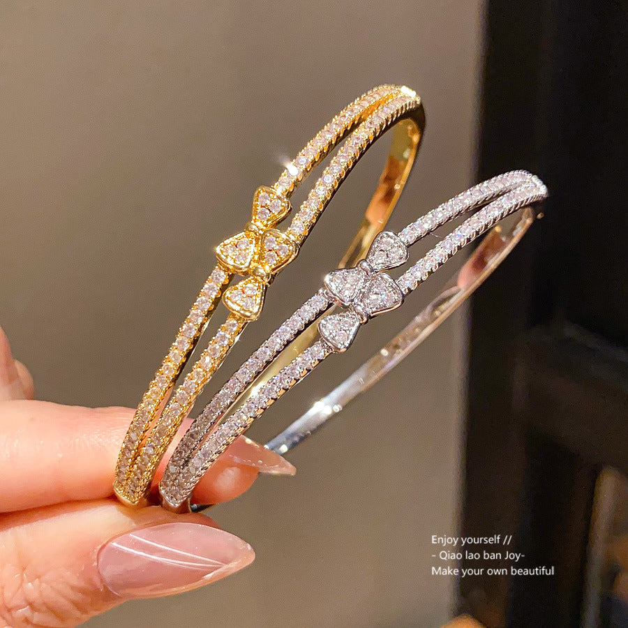 Wholesale 18k genuine gold electroplated zircon bow buckle bracelet