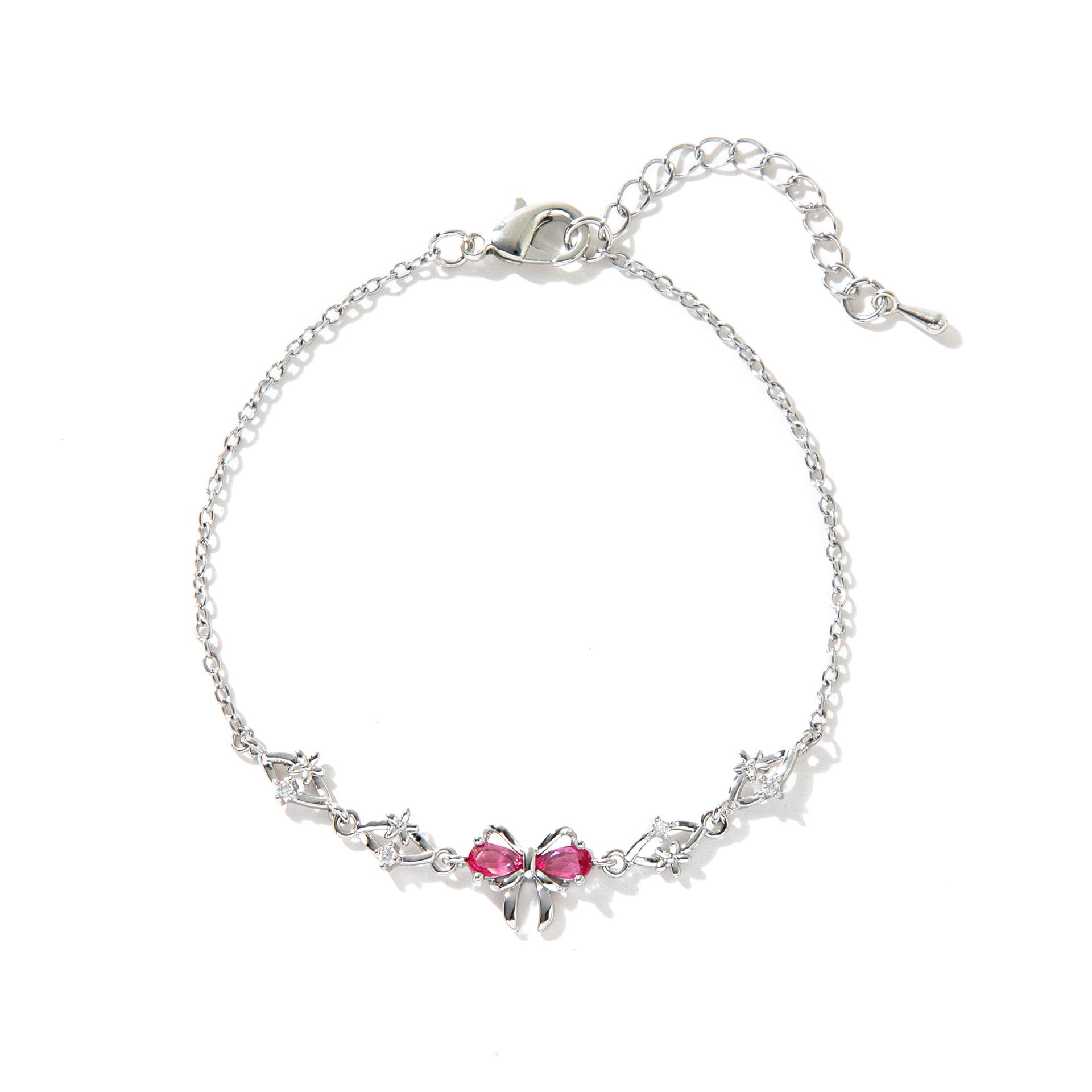 - Red zircon butterfly bracelet-silver