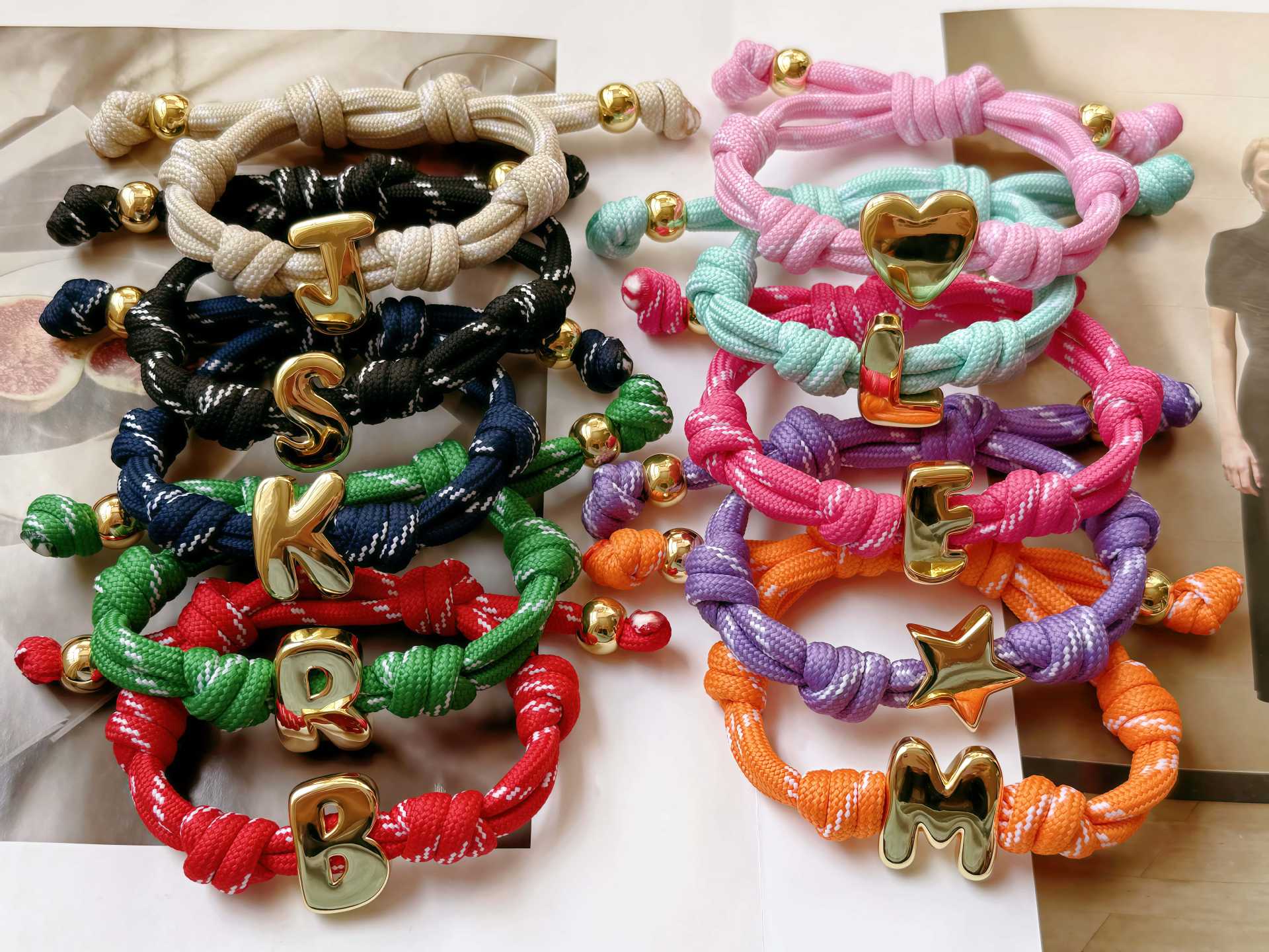 Wholesale Large hole bubble 18K gold copper plated A-Z letter pendant bracelet