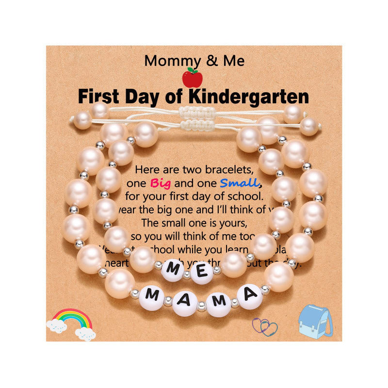 Wholesale Mammy and Me Round English Spacer Pink Beads Adjustable Bracelet