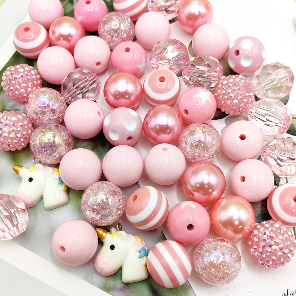 Wholesale 50pcs 20mm Unicorn Cake Pink Acrylic Mixed Color Combination Beads