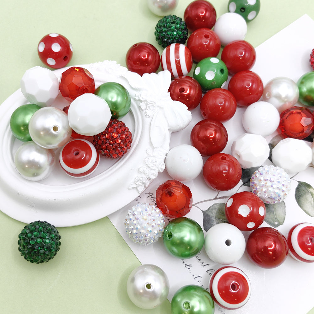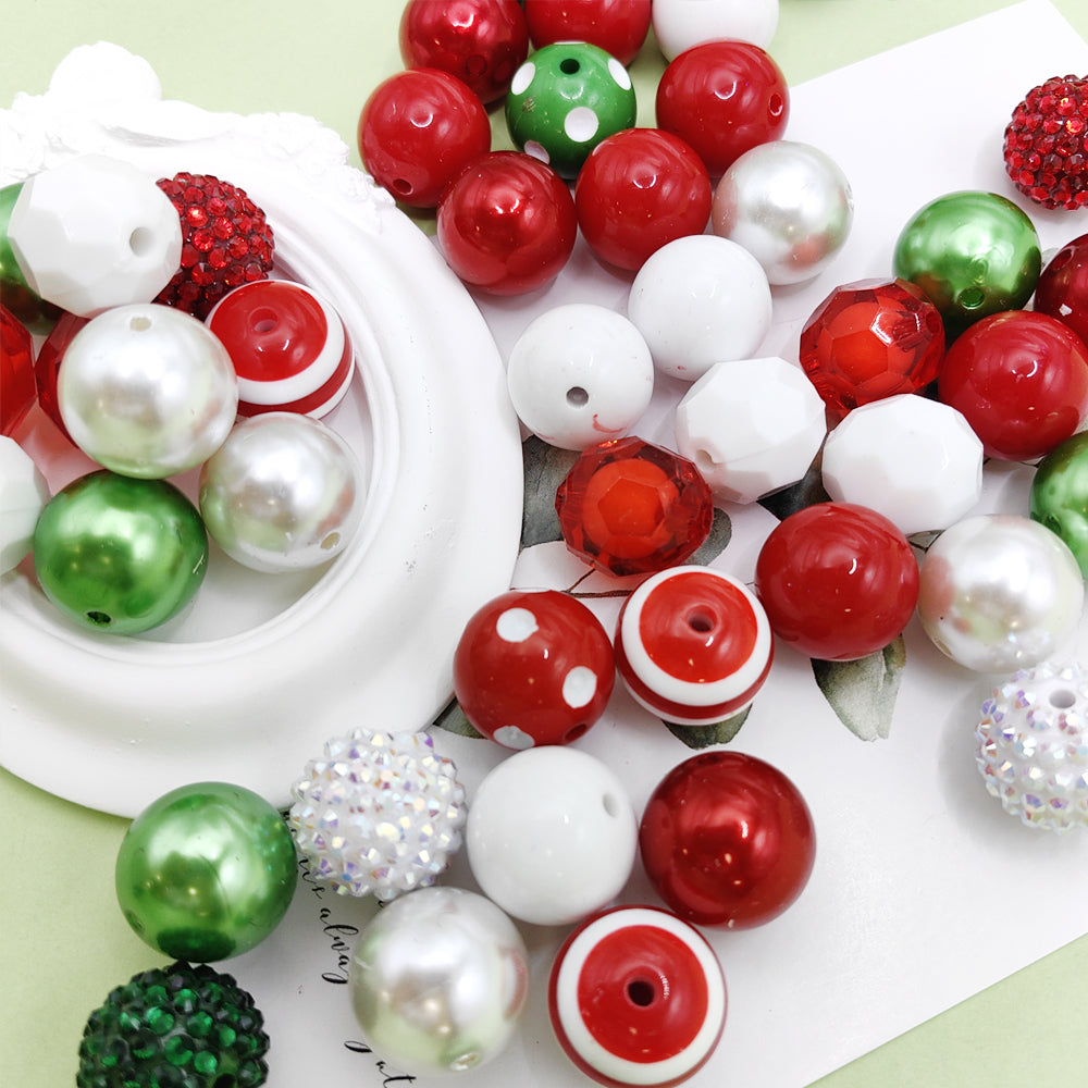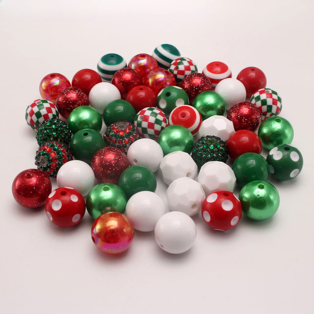 Wholesale 50pcs 20mm Red White Green Acrylic Mixed Color Beads