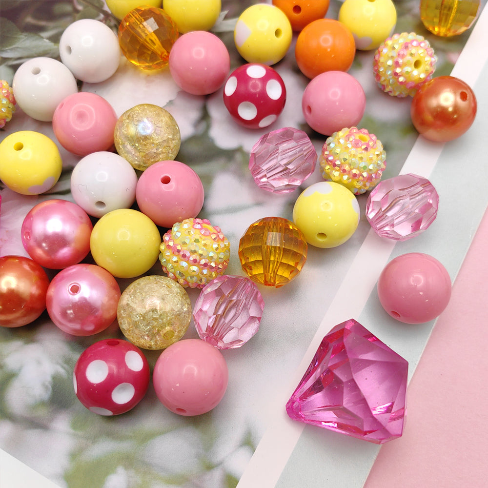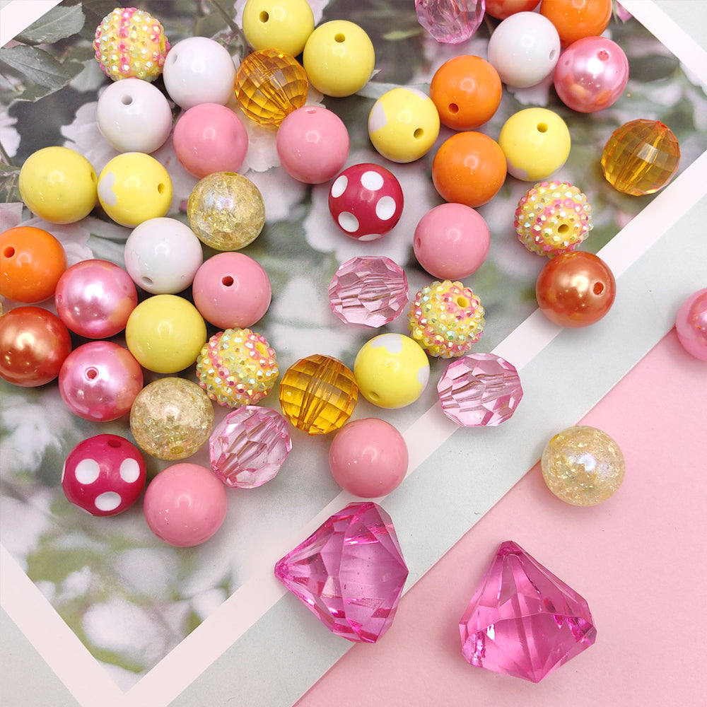 Wholesale 50pcs 20mm Diamond Acrylic Pink Yellow Mixed Color Beads