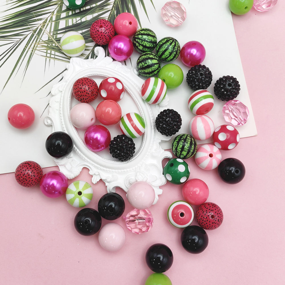Wholesale 50pcs 20mm Acrylic Summer Watermelon Mixed Color Beads