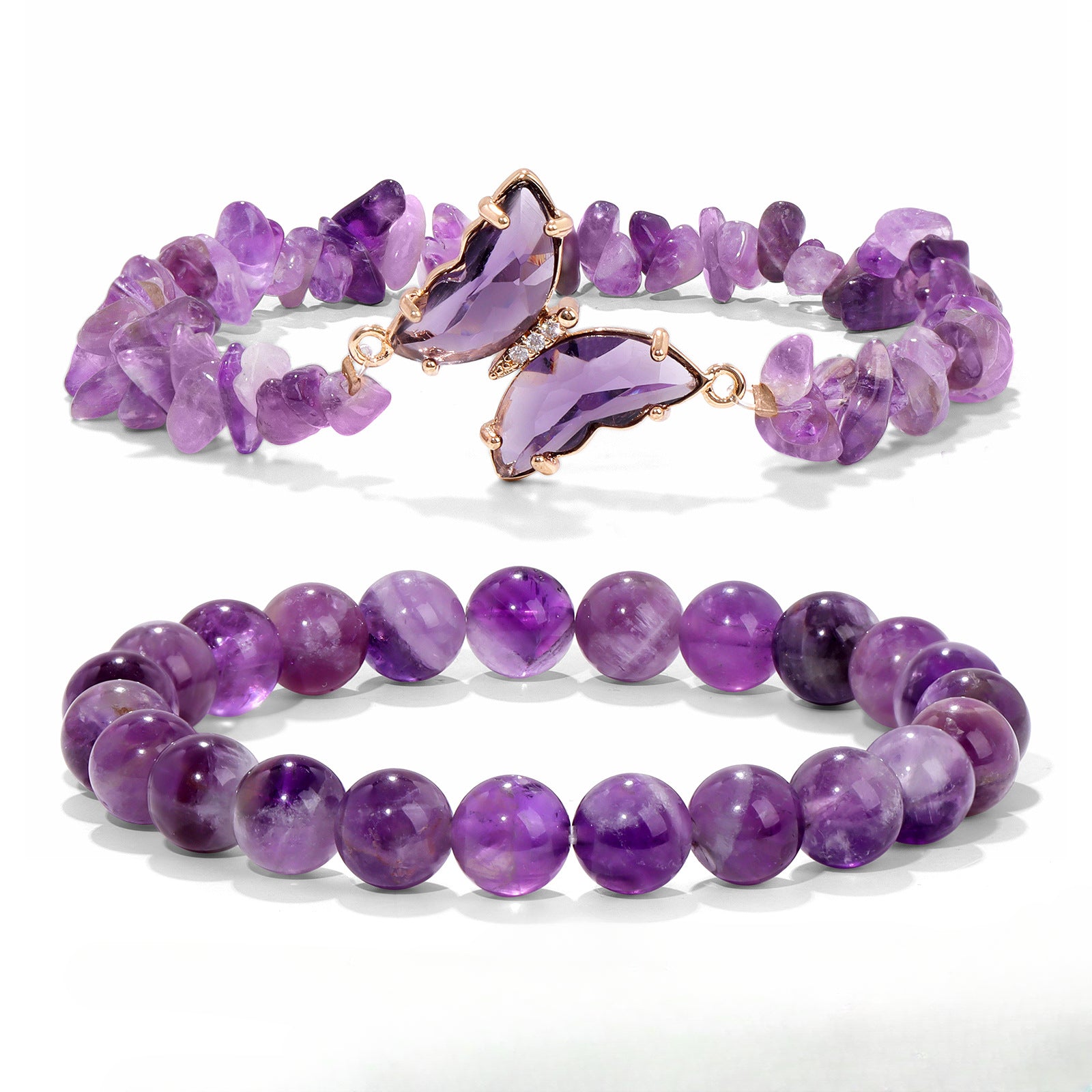 Wholesale Natural Stone Pure Handwoven Amethyst Butterfly Bracelet