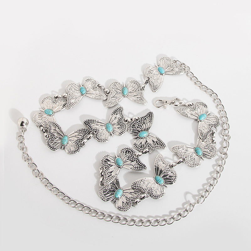 Wholesale Butterfly Daisy Metal Versatile Silver Waist Chain
