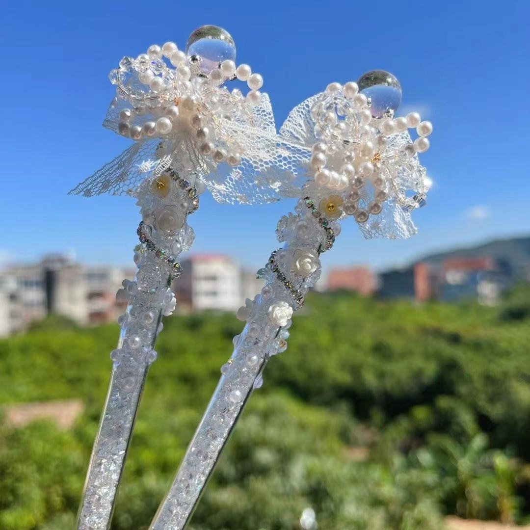 Wholesale Beaded Pen Pearl Rhinestone Bow Lace Pen Handmade Boutique Beaded Pen