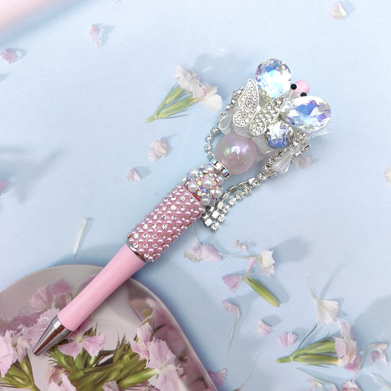 Wholesale Butterfly Sugar Diamond Pen Handmade Fine Plastic Beaded Pen