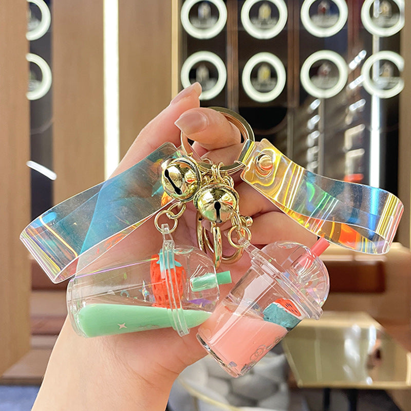 Wholesale Acrylic Oiled Milk Tea Cup Liquid Quicksand Key Chain