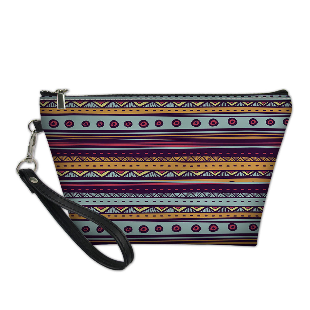 Wholesale PU Ethnic Aztec Pattern Travel Storage Portable Makeup Bag