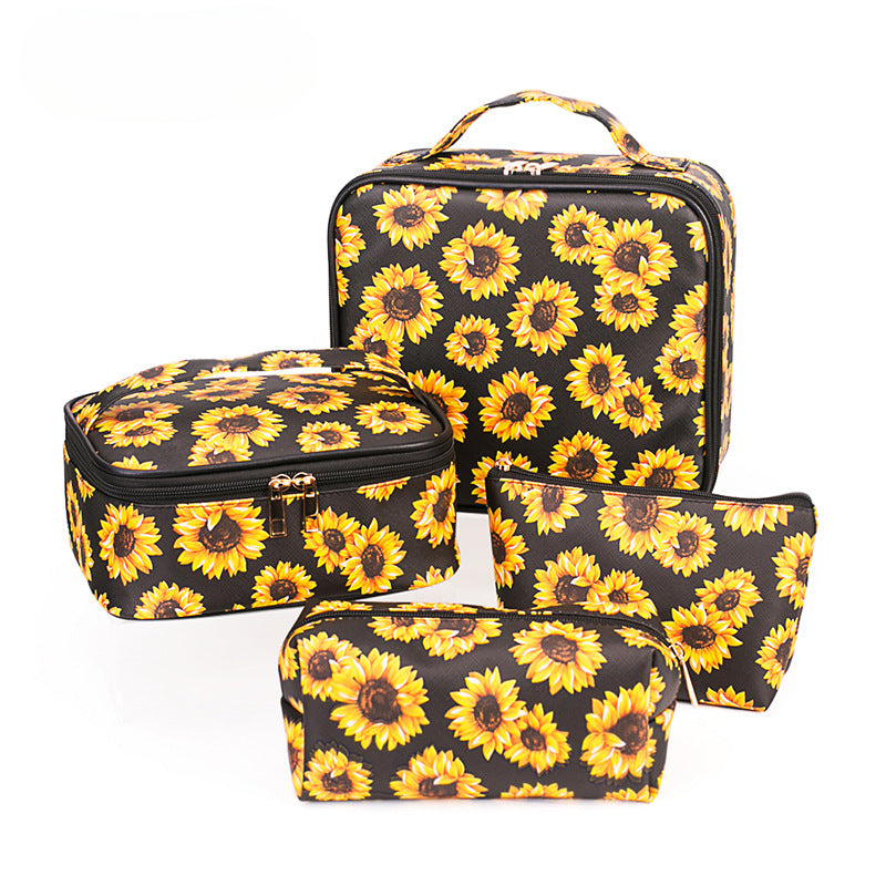 Wholesale PU Sunflower Makeup Bag, Toilet Bag, Large Capacity Storage Bag