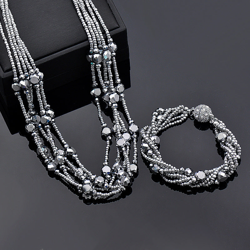 Wholesale Magnet Rhinestone Butterfly Crystal Beads Necklace Bracelet Set