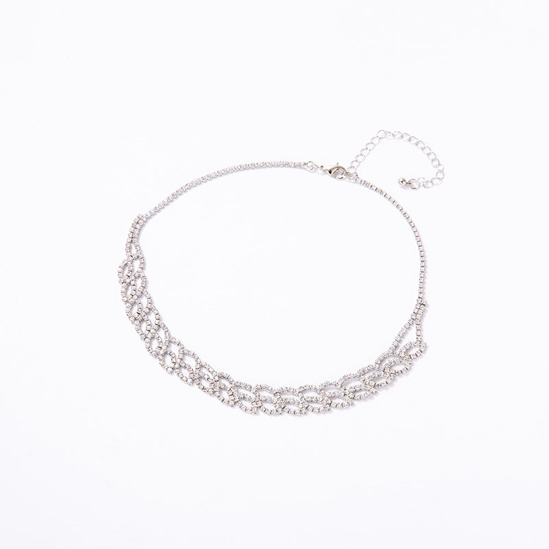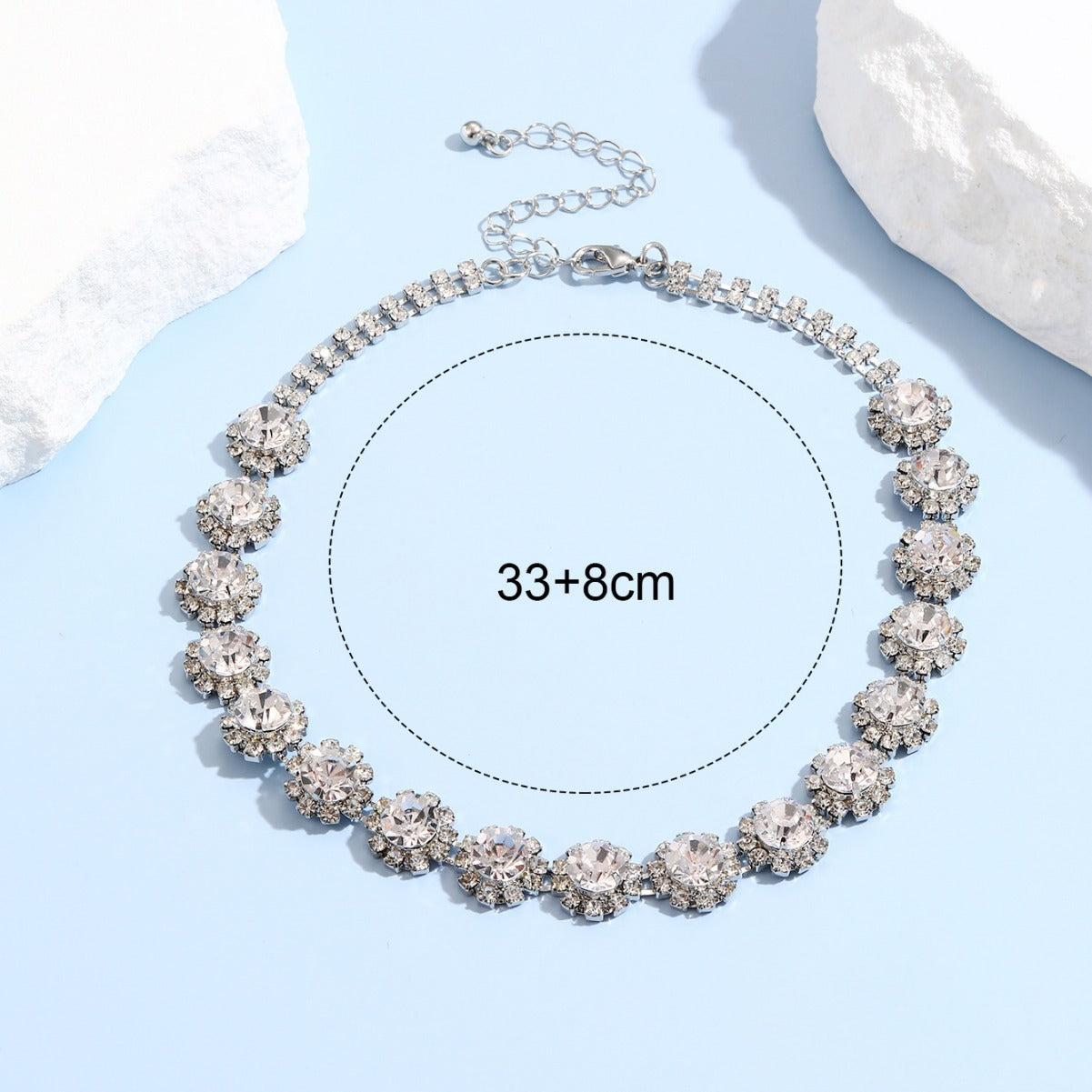 Wholesale Wedding Party Round Rhinestone Necklace Stud Earrings Jewelry Set
