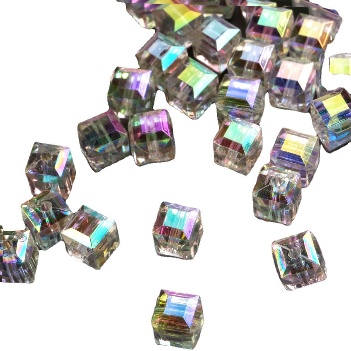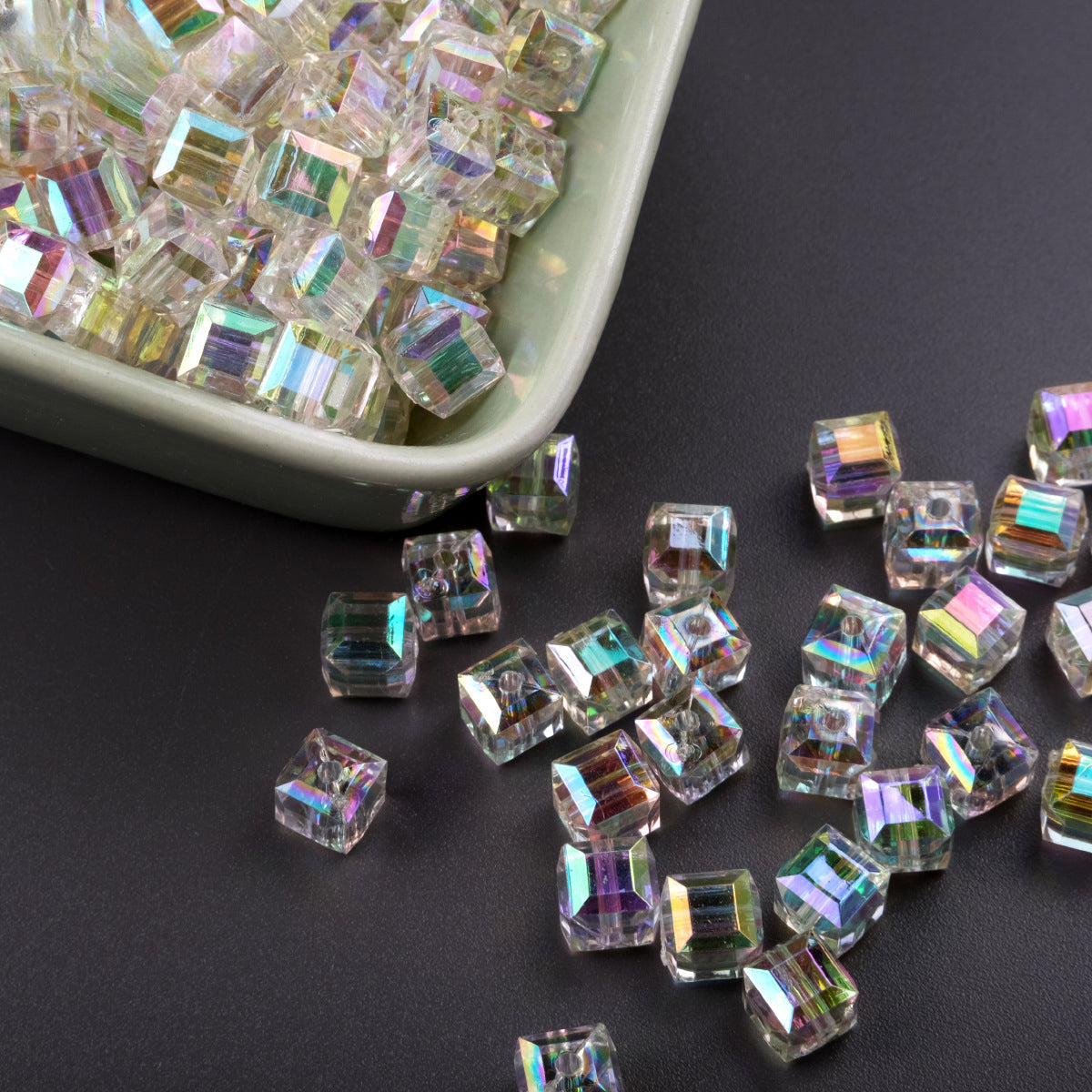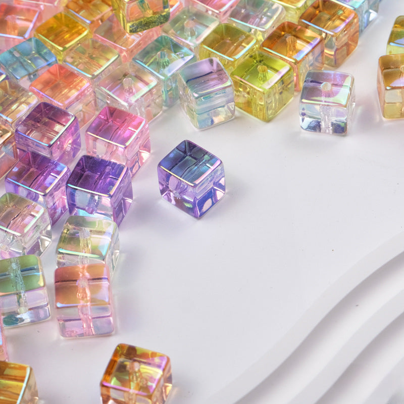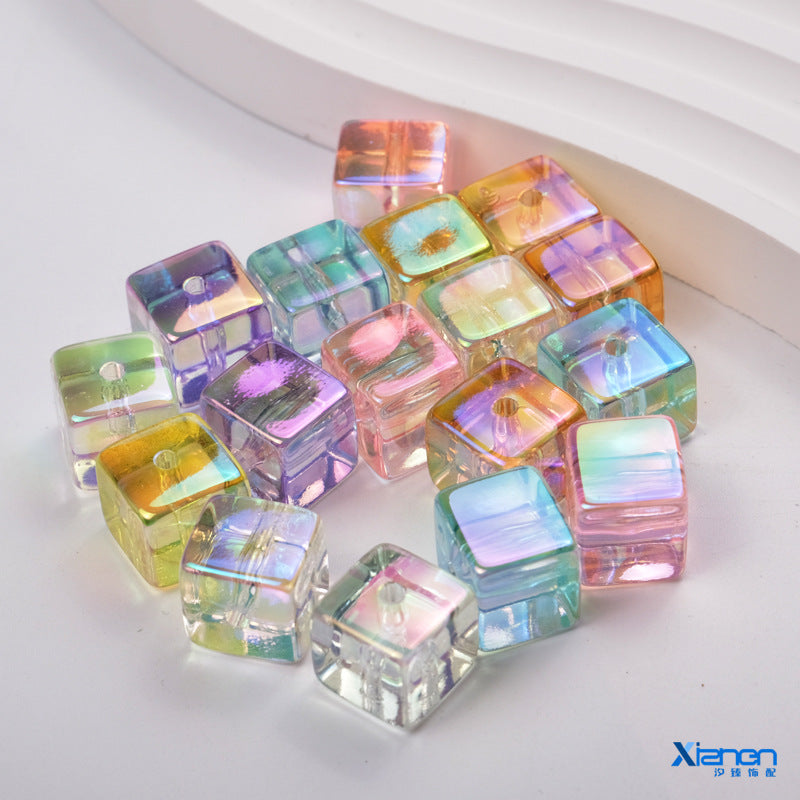 Wholesale 100PCS/PACK transparent color plated uv cube perforated acrylic Beads
