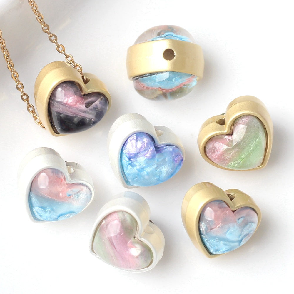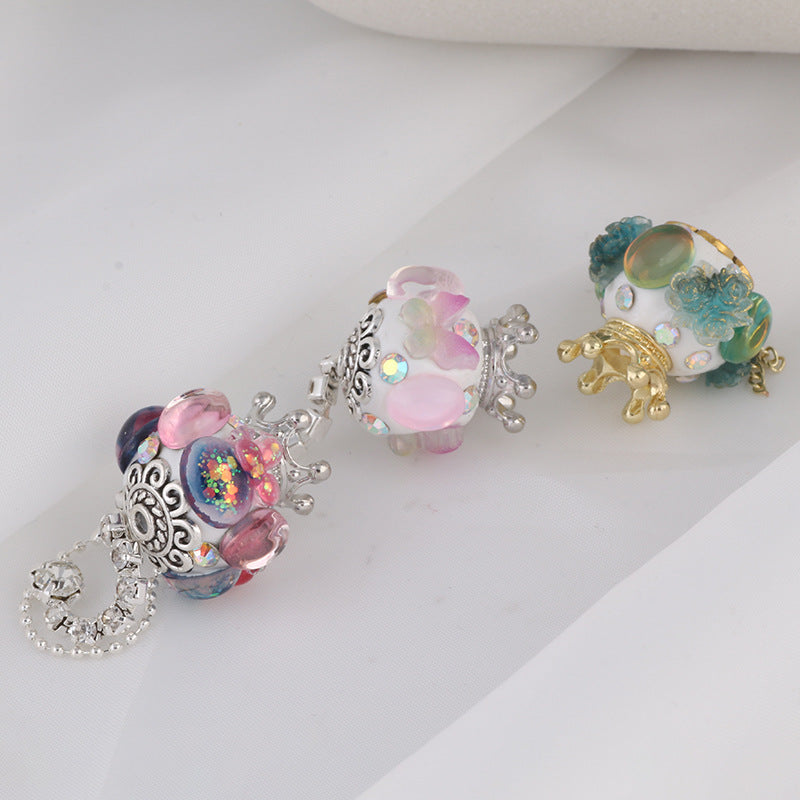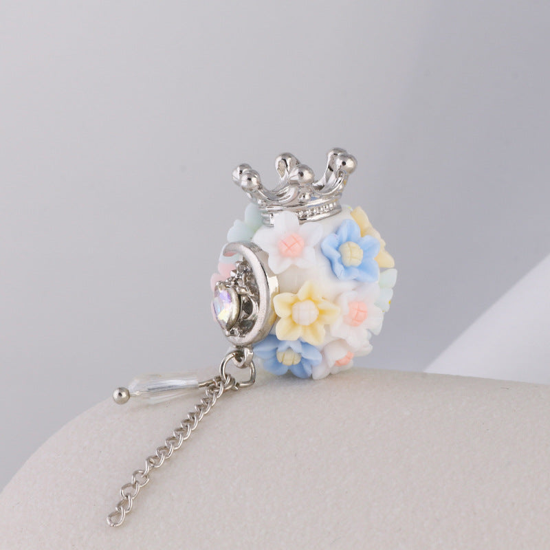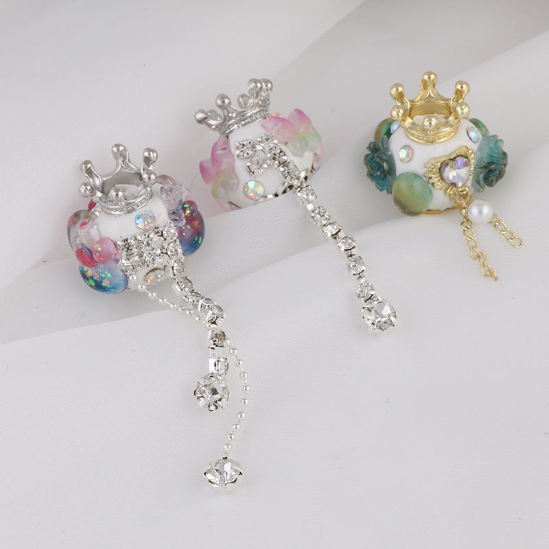 Wholesale 5pcs Crown Heart Shape Cat's Eye Tassel Polymer Clay Beads