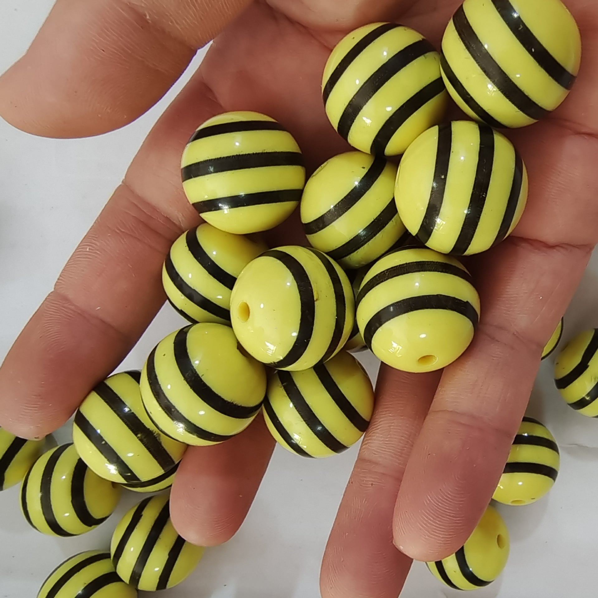 Wholesale 5pcs 20mm Acrylic Yellow Bee Stripe Print Beads