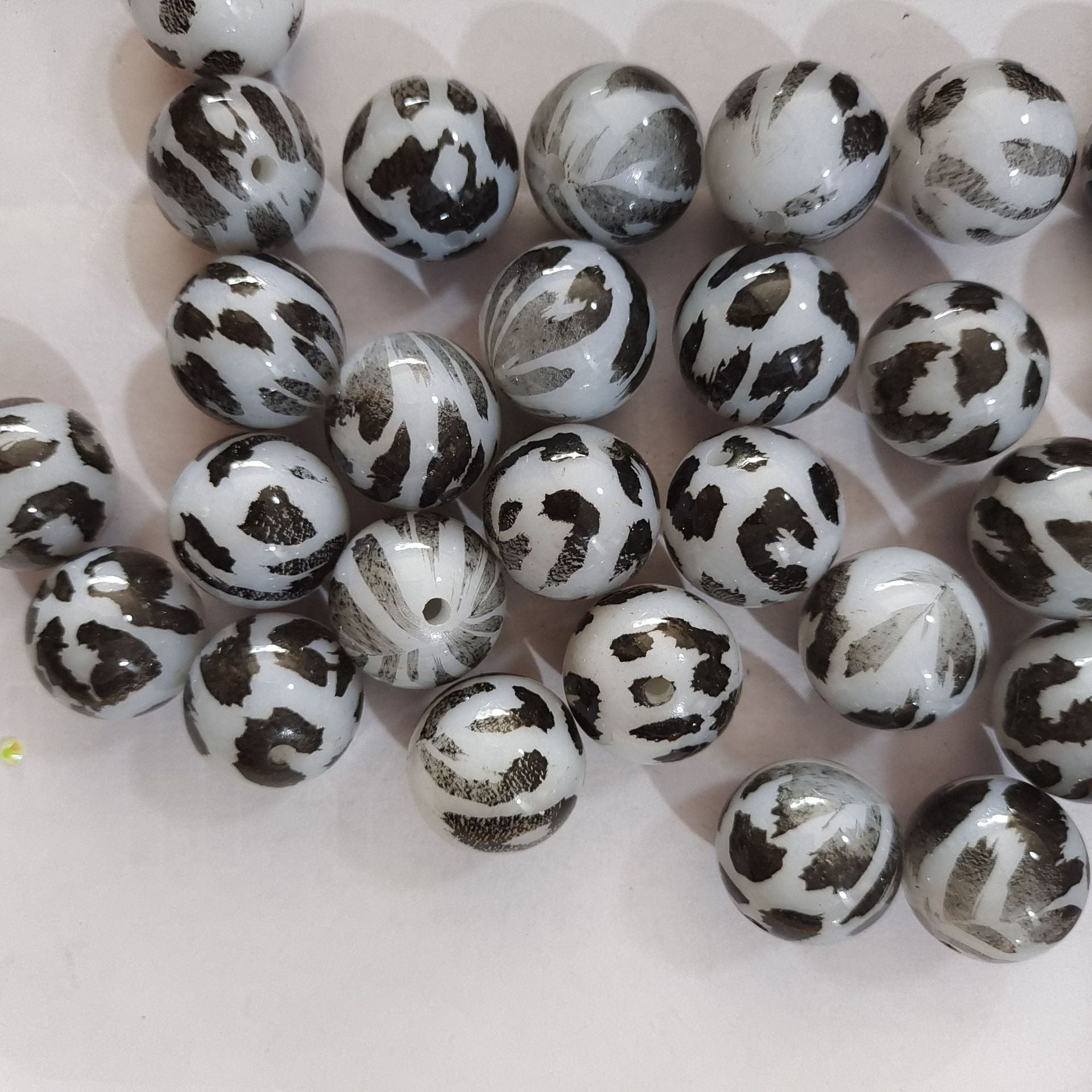 Wholesale 5pcs 20mm Acrylic Cute White Leopard Print Beads