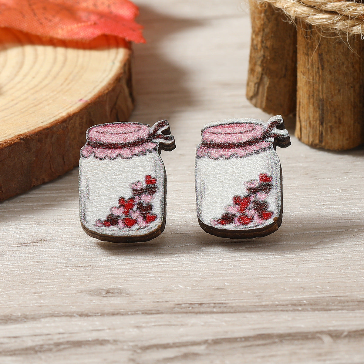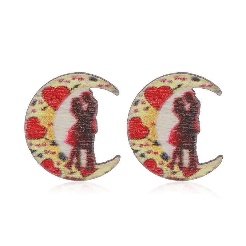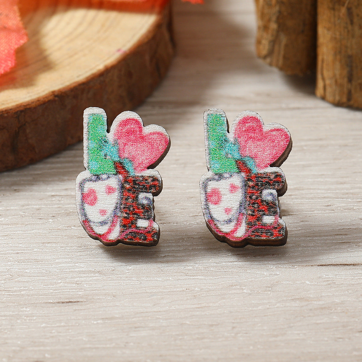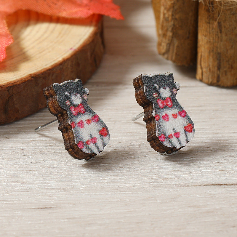 Wholesale Raindrop Umbrella Cat Love Cartoon Wooden Earrings