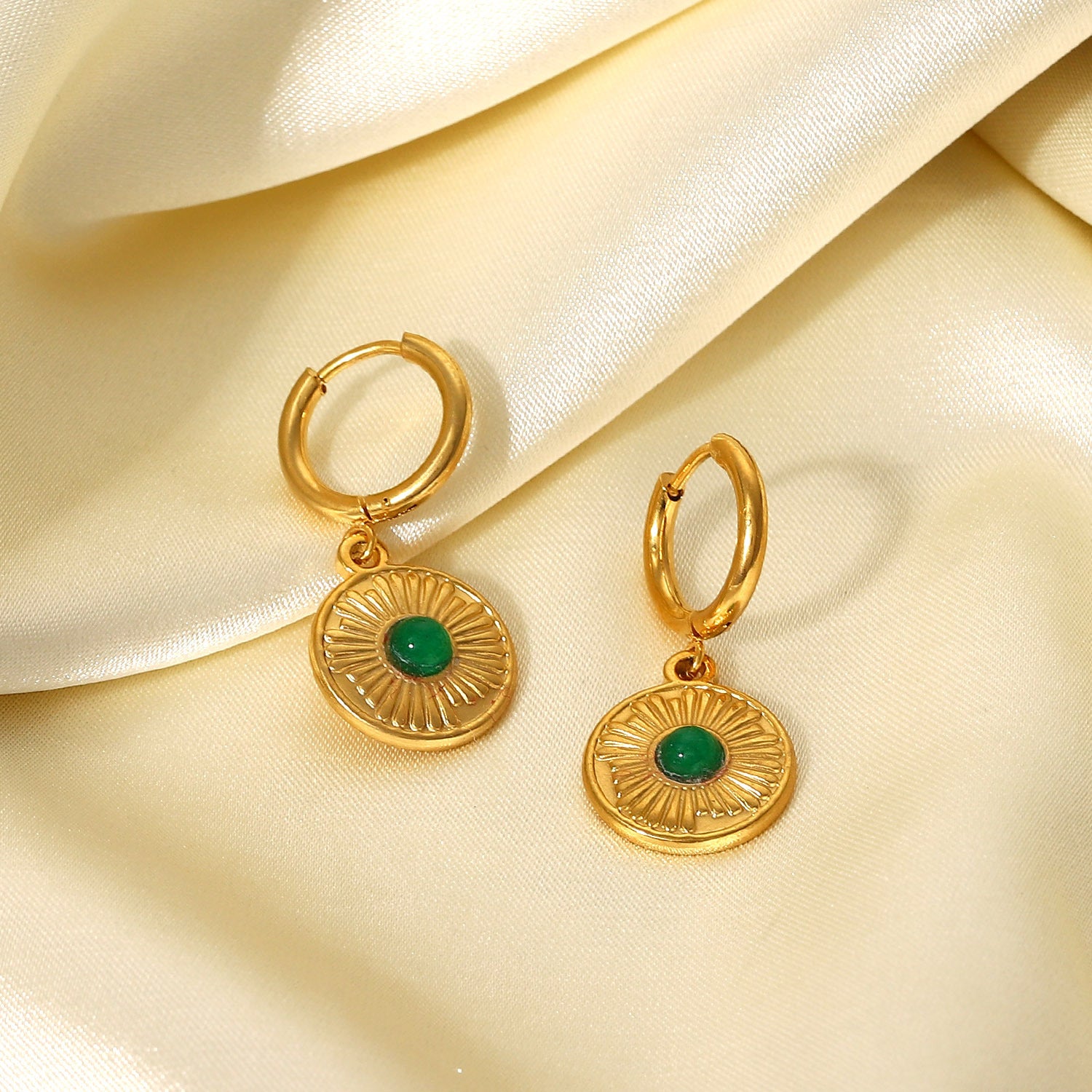 Wholesale Stainless Steel 18K Gold Semi Precious Stone Round Coin Pendant Earrings