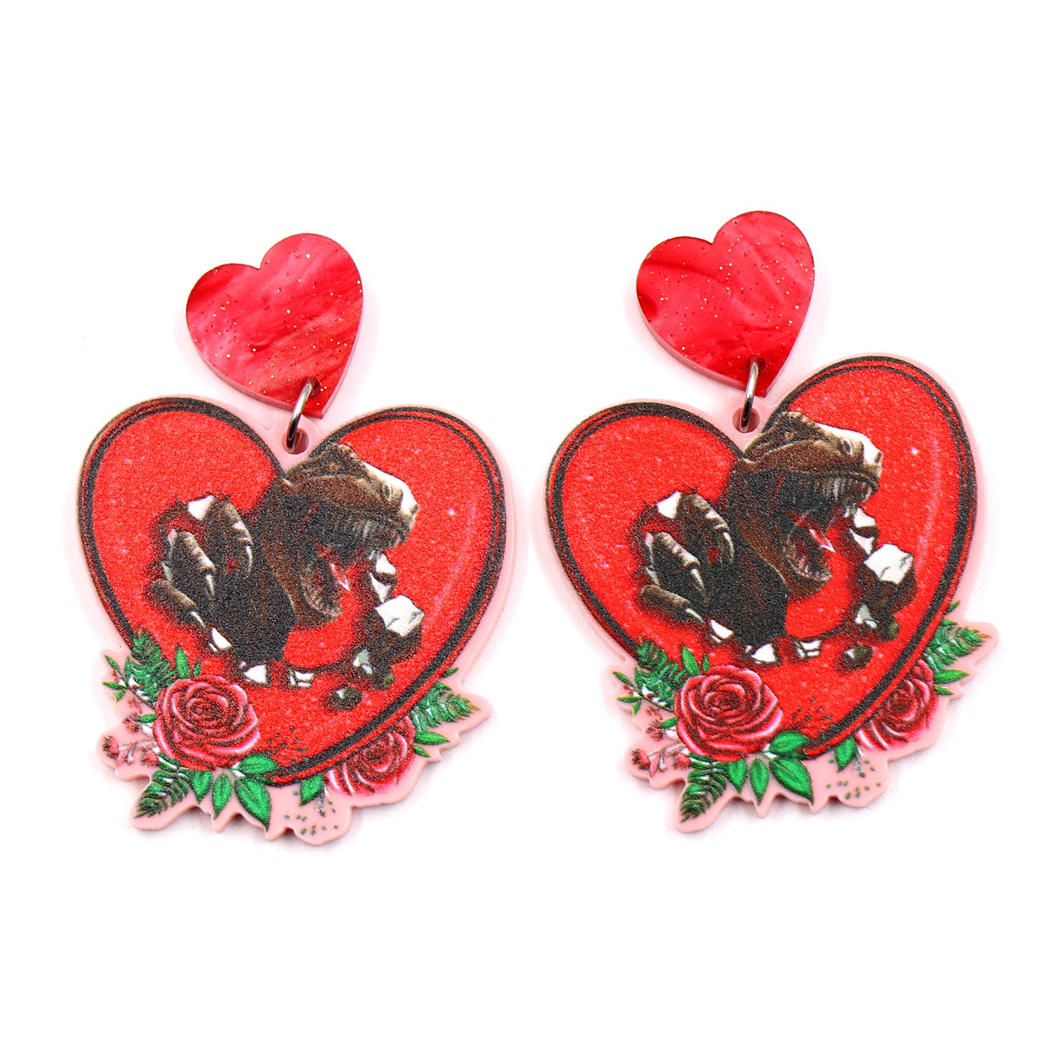 Wholesale Valentine's Day Dinosaur Rose Love Acrylic Earrings