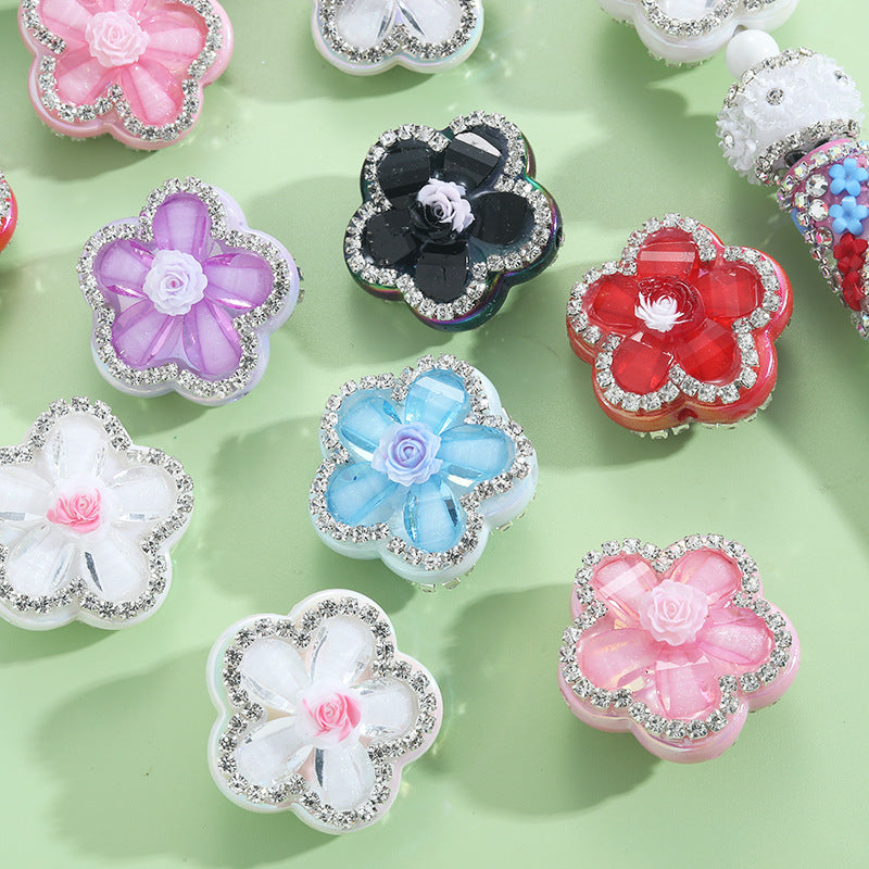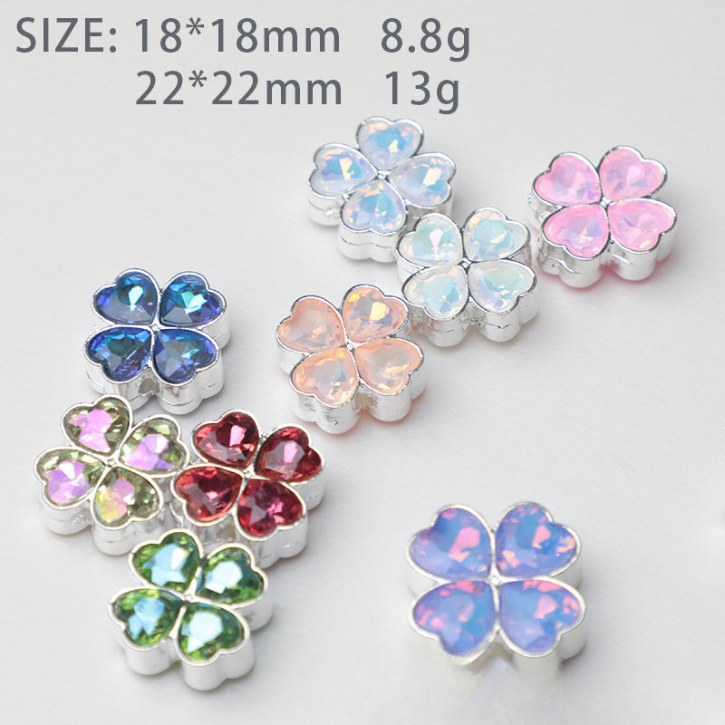Wholesale 5PCS DIY Heart-shaped Four-leaf Clover Beaded Hollow Beads with Large Diamonds