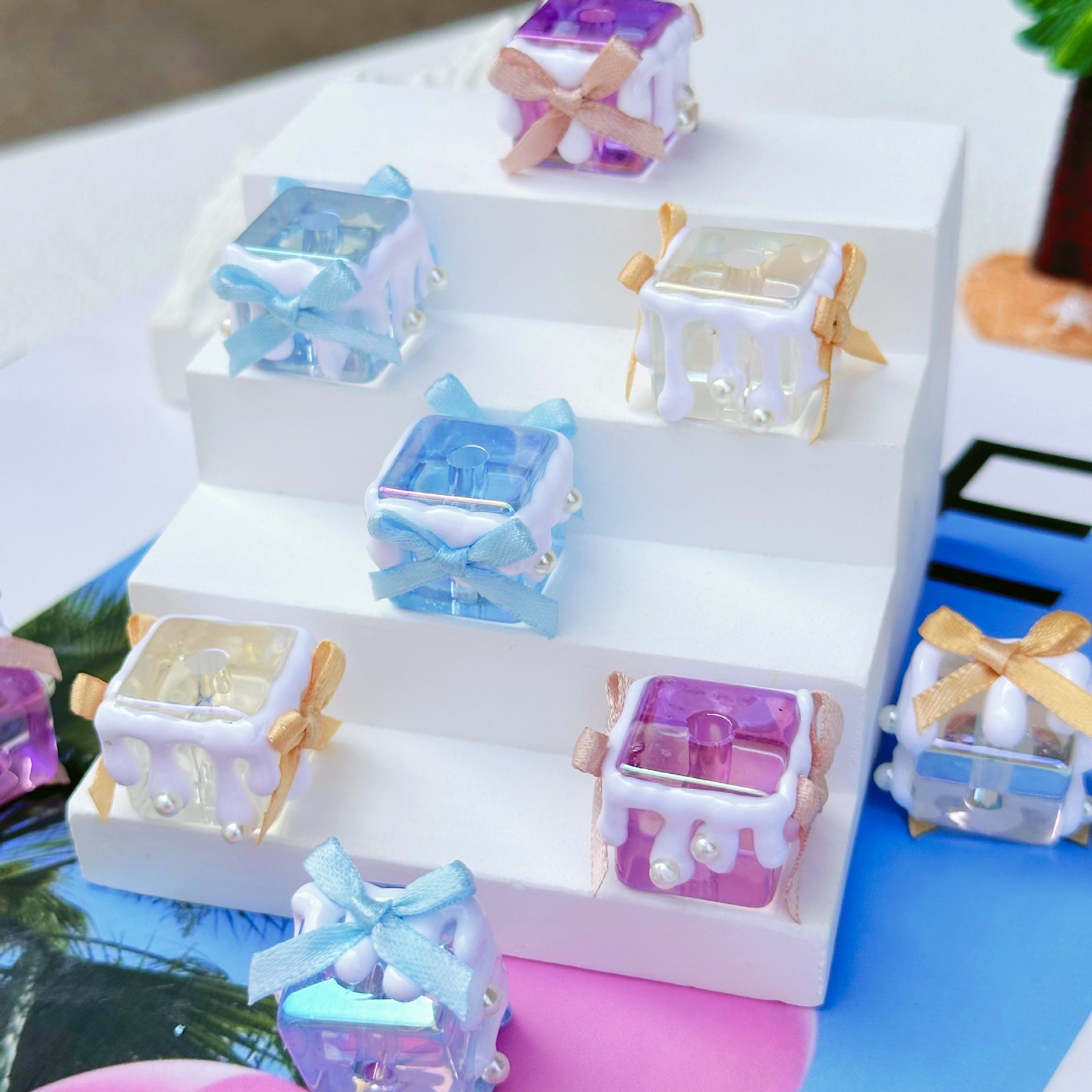Wholesale 5pcs 3mm Pearl Cream Bow Square Beads