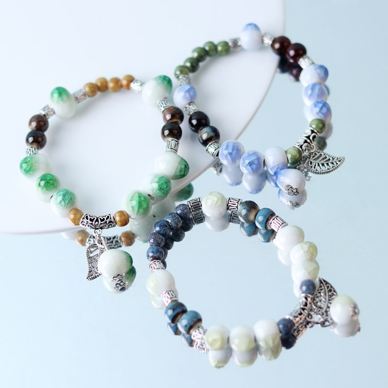Wholesale Alloy Pendant Single Circle Ceramic Beading Bracelet