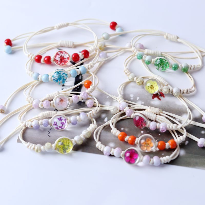 Wholesale Dried Flower Specimen Gypsophila Glass Ball Ceramic Bracelet