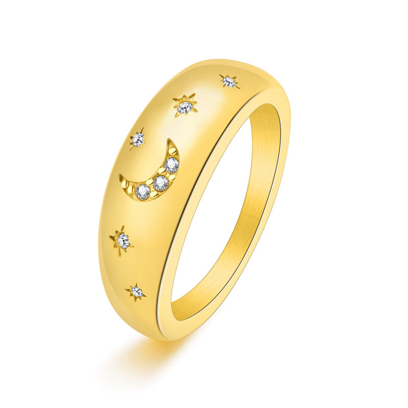 Wholesale Star Moon Titanium Steel Diamond Ring